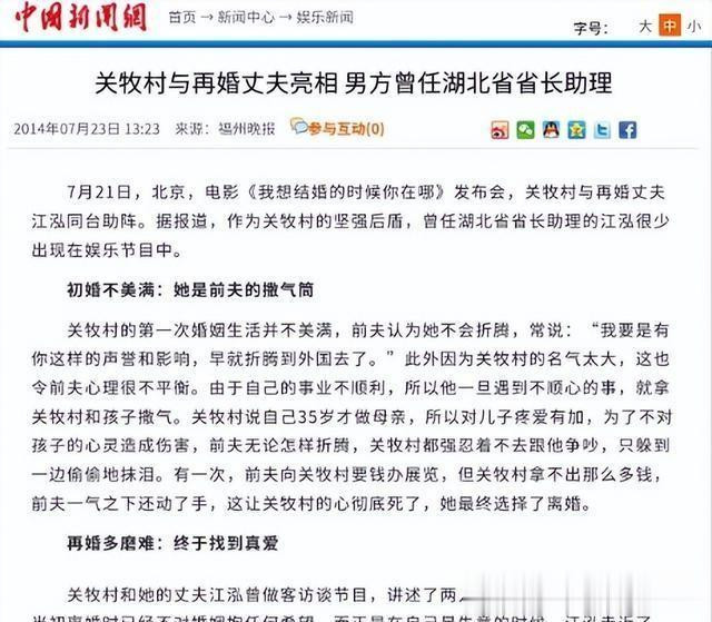 凤凰网:关牧村与高官丈夫公开亮相 谈再婚:终于找到真爱