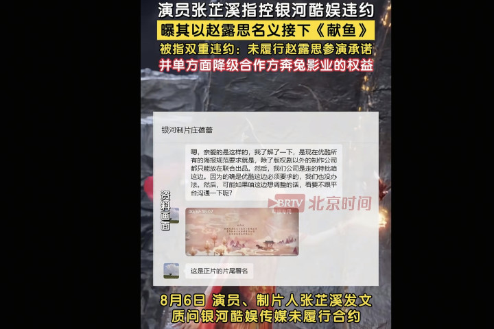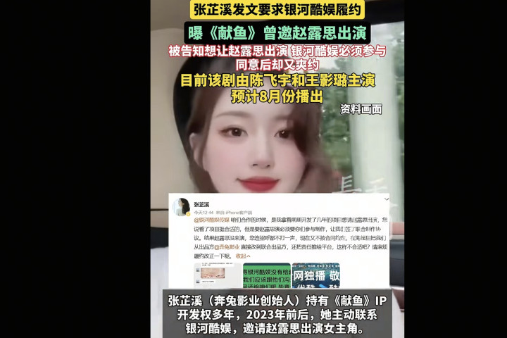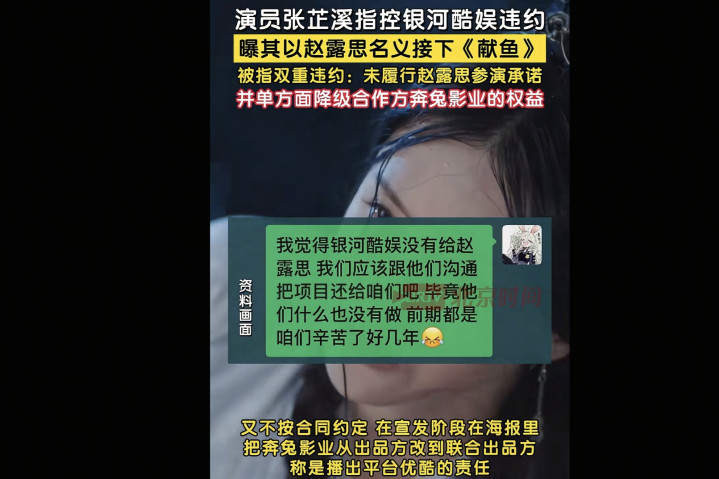 张芷溪炮轰银河酷娱乐利用赵露思名义赚钱, 骗取制作权后更换主演