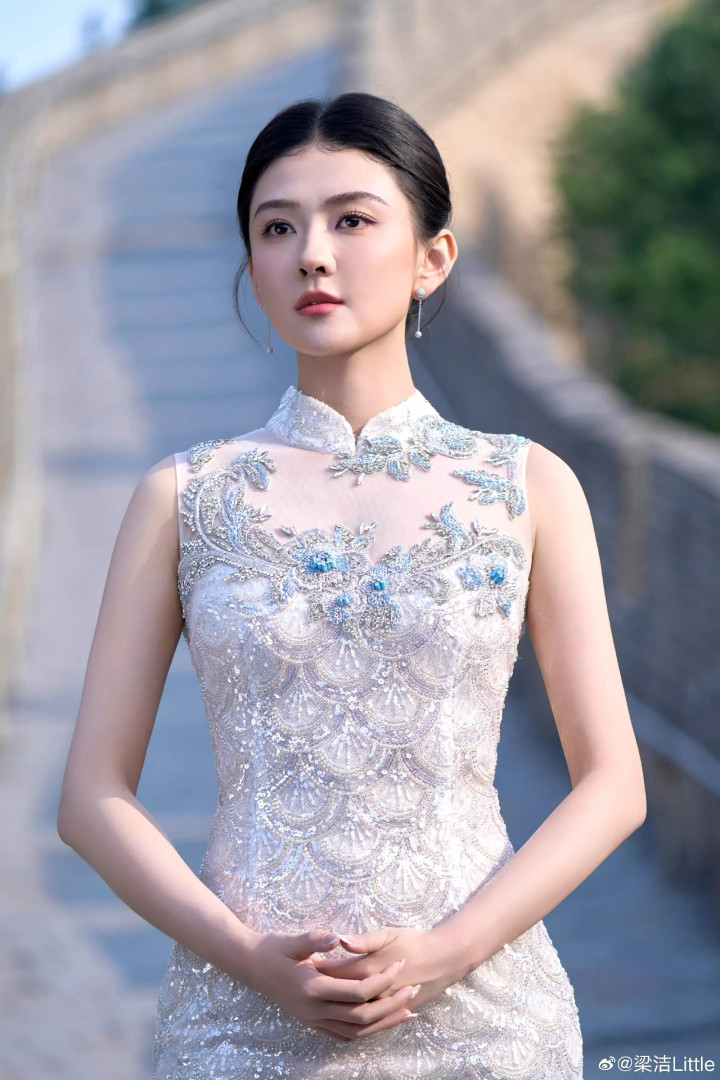 梁洁穿旗袍, 完美的展现了她婀娜身姿