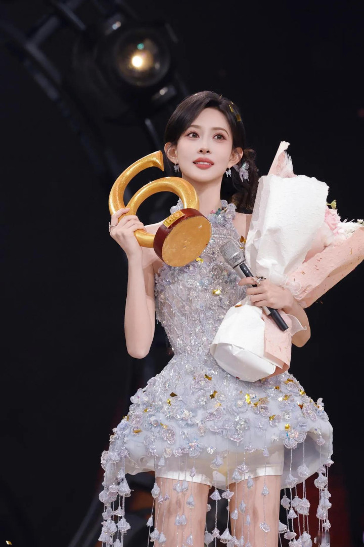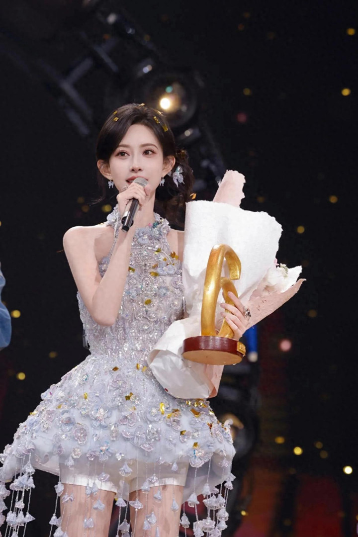 8.古力娜扎穿着白色居家服, 光着脚坐在地板上, 卷发披肩, 慵