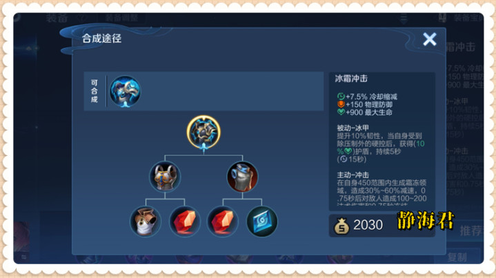 关于冰霜冲击这件装备,前段时间我已经和小伙伴们详细描述过为什么它是我认为的第一物抗装。事实上如果你有关心职业联赛就会发现,现在职业打野基本人手一个(你甚至能看到冰甲娜可露露),本次它的调整(修复)是: