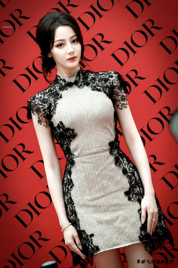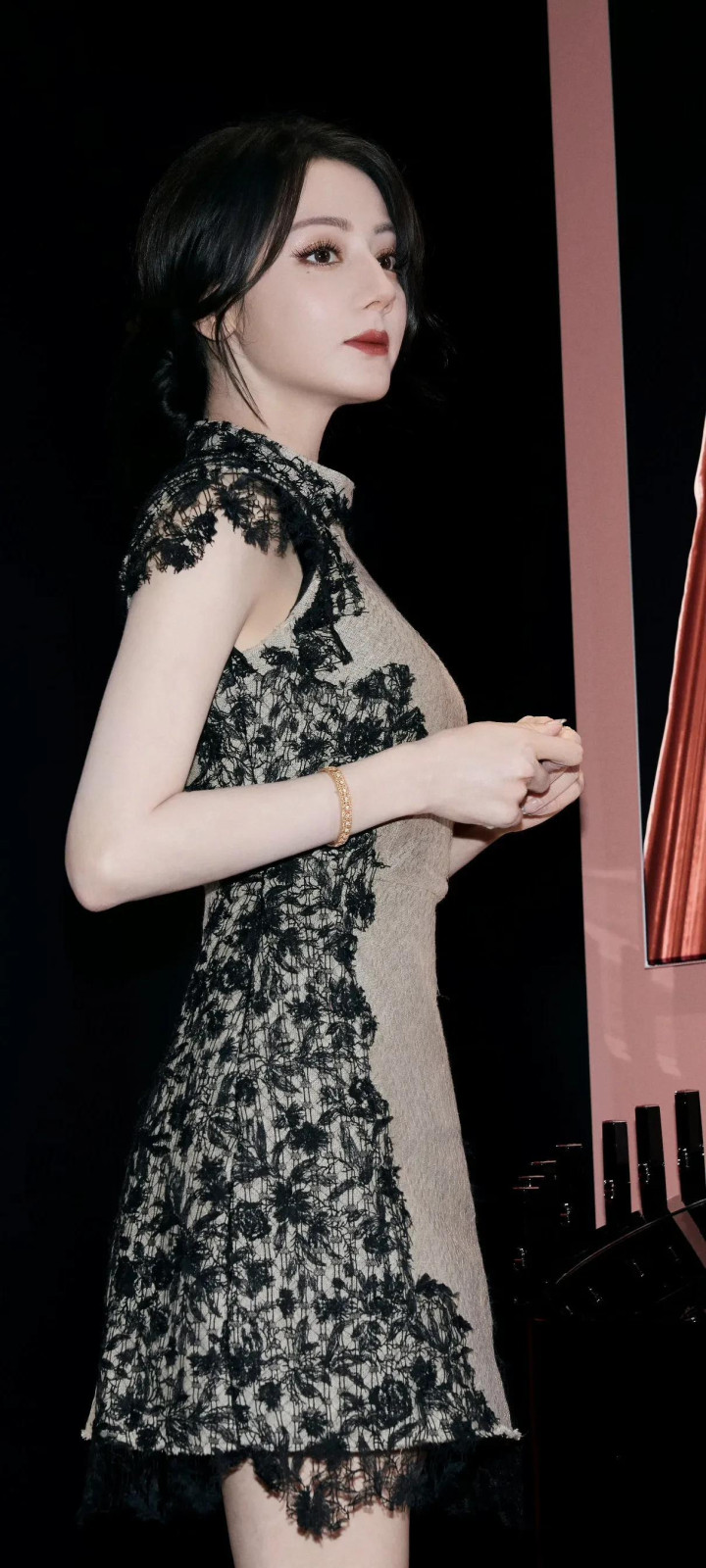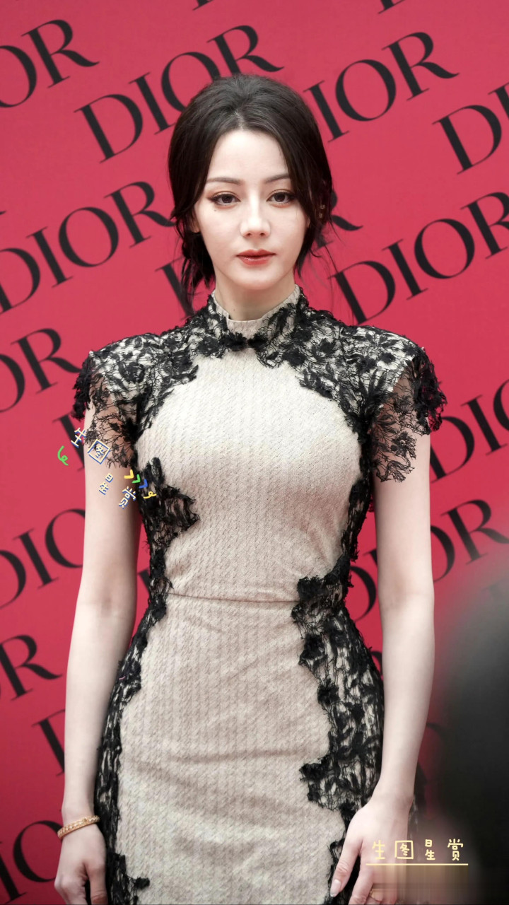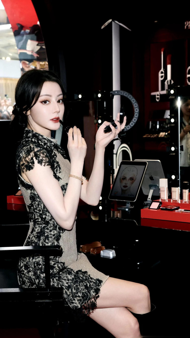 美神降临三里屯, 迪丽热巴身着蕾丝短裙出席线下品牌活动。