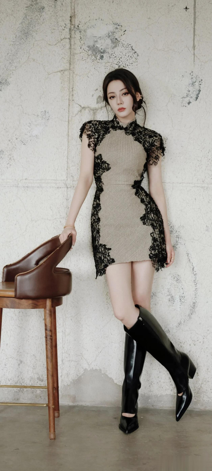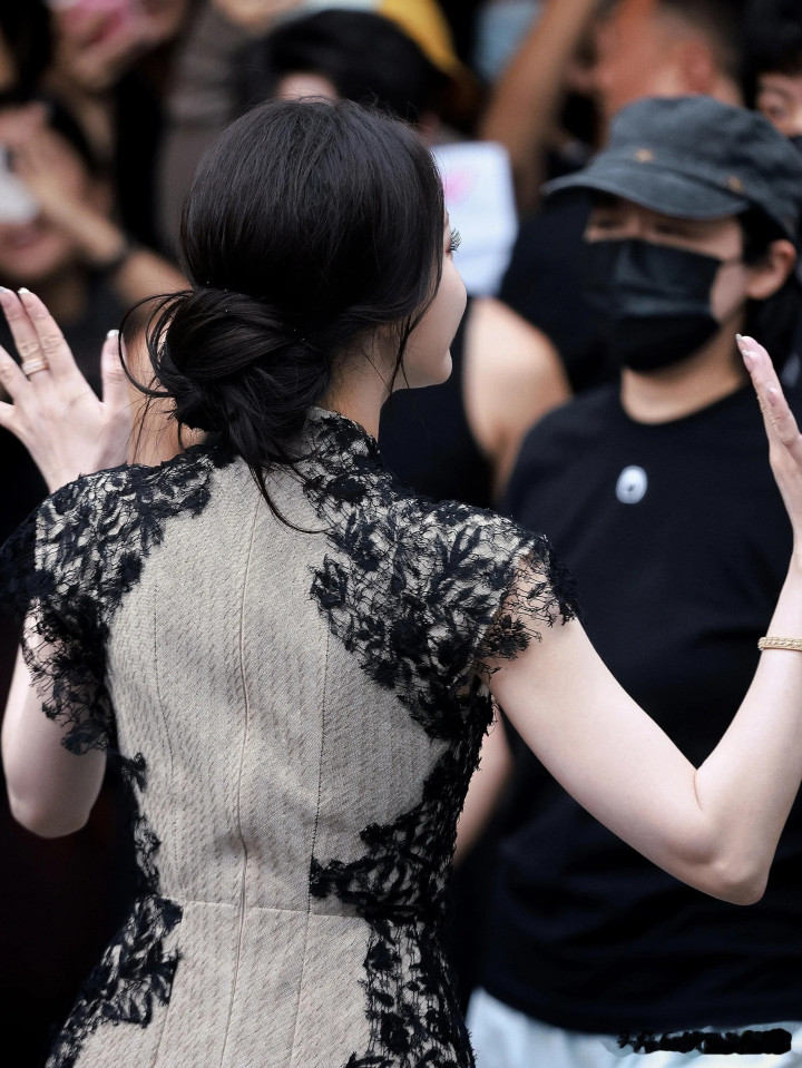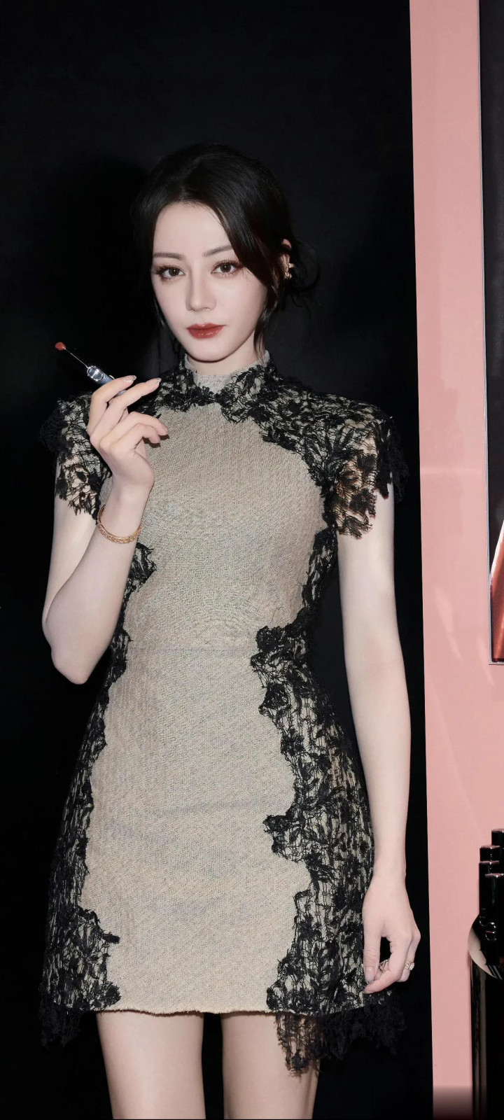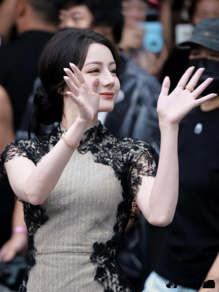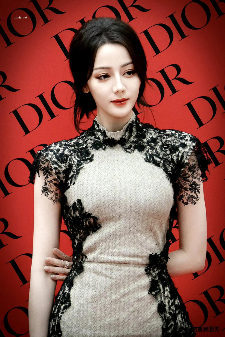 美神降临三里屯, 迪丽热巴身着蕾丝短裙出席线下品牌活动。