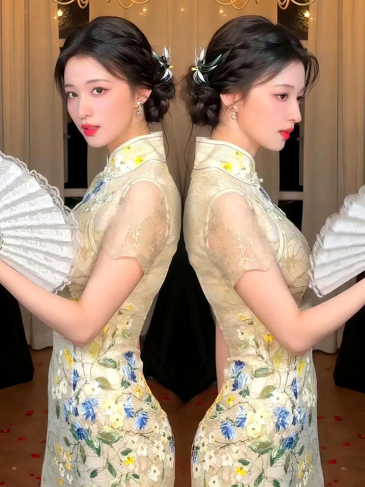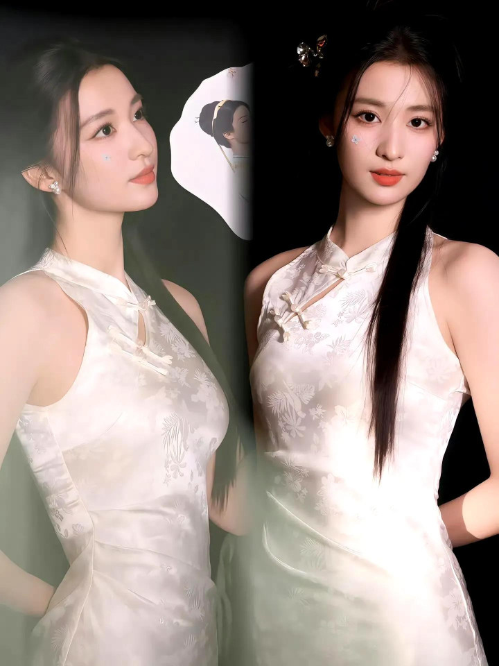 - 古力娜扎穿着白色居家服, 光着脚坐在地板上, 卷发披肩, 慵