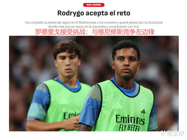 9月4日,《阿斯报》撰文透露,在罗德里戈的使用上,阿隆索已经找到答案:龙哥希望用竞争上岗的方式,激发罗德里戈、维尼修斯的战斗力。