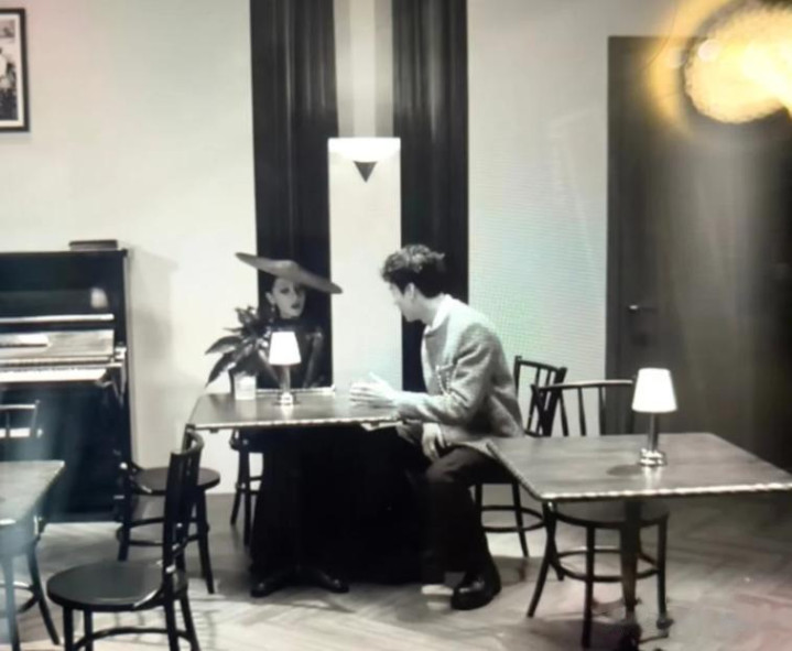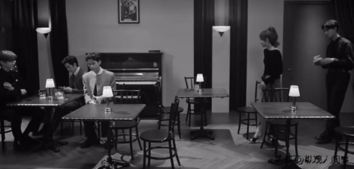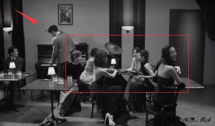 在W年度盛典的内场聊天间,因为致敬默剧,所以画面都是黑白色,明星们在走完红毯之后,可以在房间中聊天。