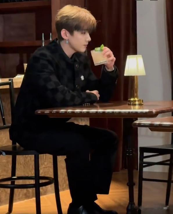一进来就特别社恐得坐在了角落中,在等人的时候,默默拿着饮料喝水,都快要把人给等自闭了。
