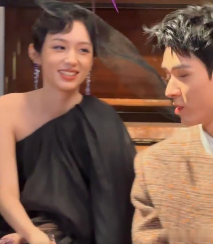 前脚在红毯上还是“十八铜人”的紧身衣,到了晚宴上直接换了一个风格,齐刘海造型像是个邻家大姐姐一样。