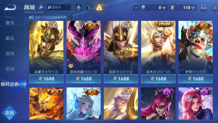 限时点券活动从18号开启到现在已经开启三天了,从8月19号到8月24号,这几天只要登录游戏,就能每天领取100限时点券和100星币,那么存够一定数量的限时点券以后,我们应该用这限时点券购买什么传说皮肤呢?