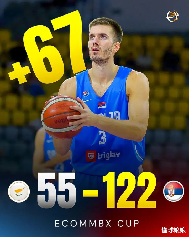 昨天结束的欧锦赛热身赛,约基奇领衔的塞尔维亚以106-72大胜东契奇领衔的斯洛文尼亚