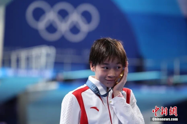 2024年8月6日,巴黎奥运会跳水女子10米台决赛上演两名中国选手的巅峰对决。经过五轮较量,东京奥运会该项目冠军、中国选手全红婵击败队友陈芋汐摘金。中新社记者 富田 摄