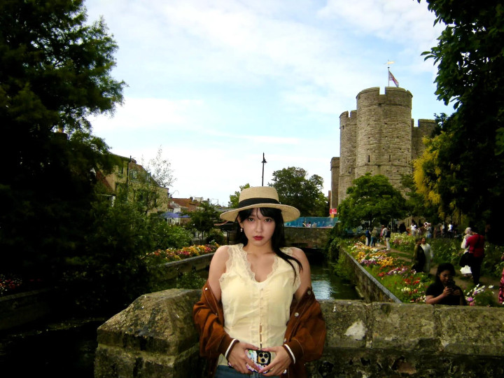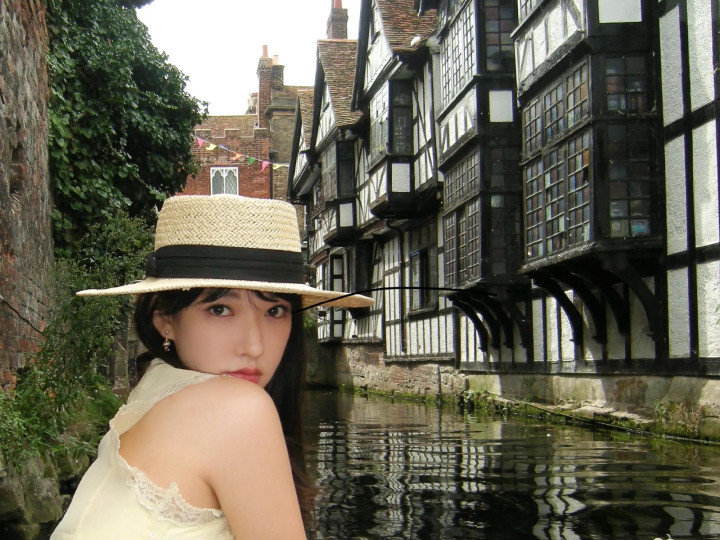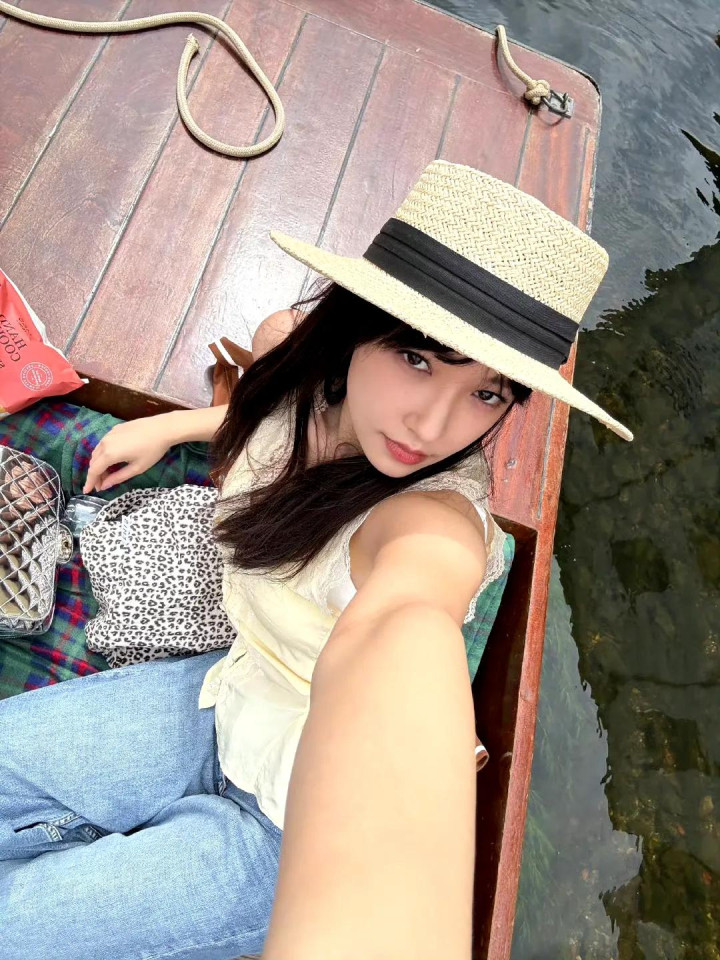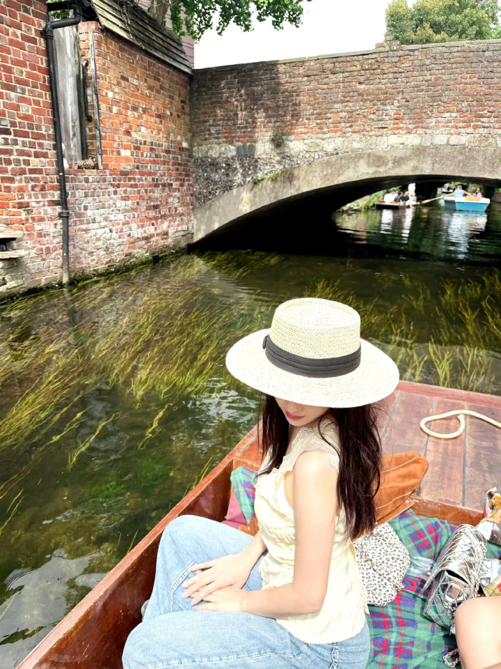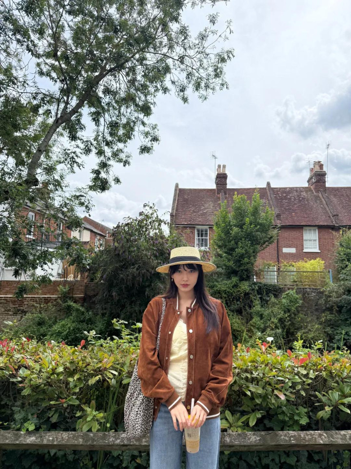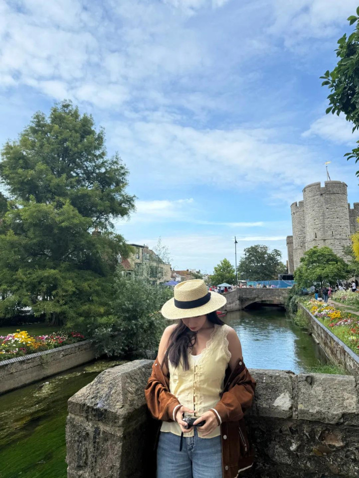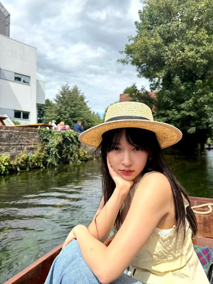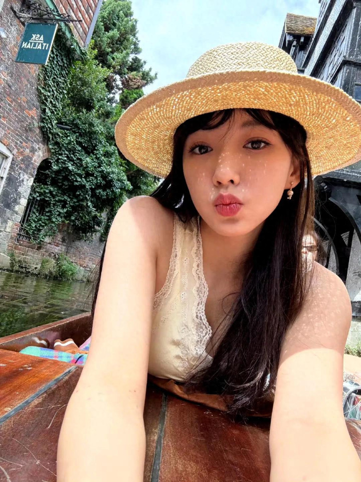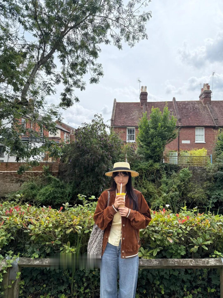 程潇晒游玩美照, 以绿茵河岸为背景, 风景好漂亮但人更漂亮呀!