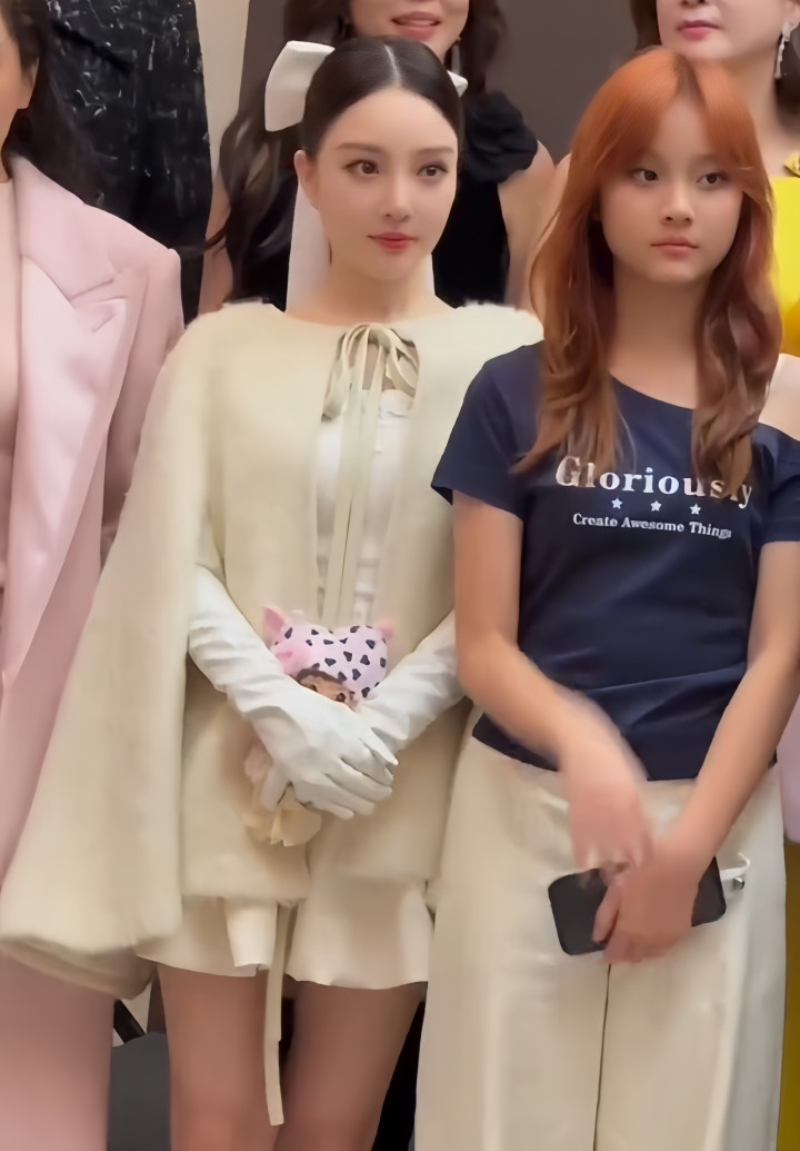 穿着白色的小短裙还不酸,竟然头上还绑着一个大大的蝴蝶结,少女感实属有点太强了。