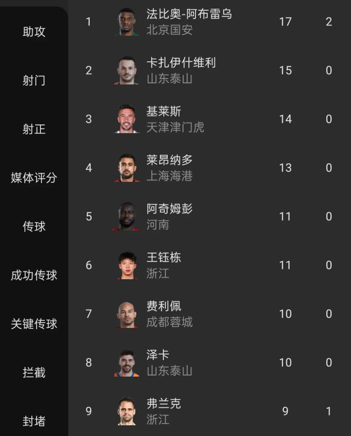 2025年中超联赛射手榜,素材来源于