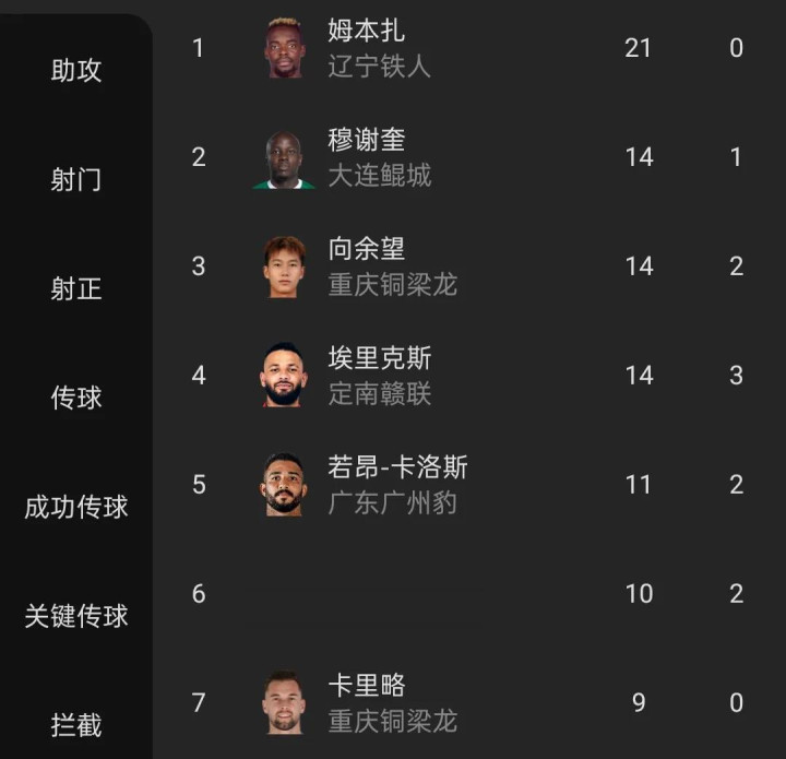 而在中甲联赛方面,向余望本赛季发挥同样出色,以14粒进球排在中甲射手榜并列第二位,也是前七名中唯一的本土射手。
