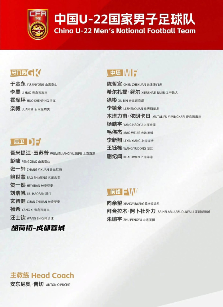像浙江队的王钰栋、刘浩帆、汪士钦,青岛西海岸的徐彬、李昊、杨希,上海海港的吾米提江、蒯纪闻、李新翔,成都蓉城的胡荷韬,大连英博的朱鹏宇、毛伟杰,深圳新鹏程的拜合拉木等队员,都已经成为了球队的重要一员。