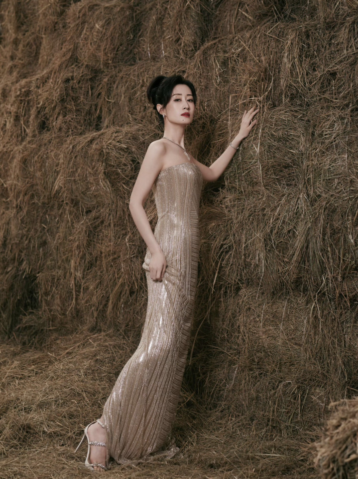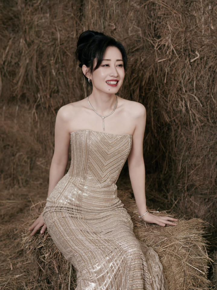 比起少女的灵动,刘敏涛身着这条土色抹胸裙时,展现的是另一种动人的美:是身形的曼妙舒展,是气质的从容笃定,是岁月沉淀后不慌不忙的优雅。那抹土色,那条裙摆,仿佛都成了她的一部分,将成熟女性独有的魅力,藏在每一寸线条里,让人一眼便懂,何为时光馈赠的美好。